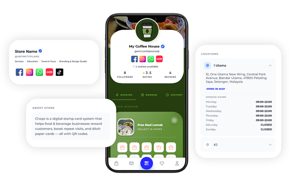 Chopz is a digital stamp card platform that helps businesses create and manage loyalty programs. Merchants can issue digital stamps, run campaigns, and reward customers without printing physical cards.
